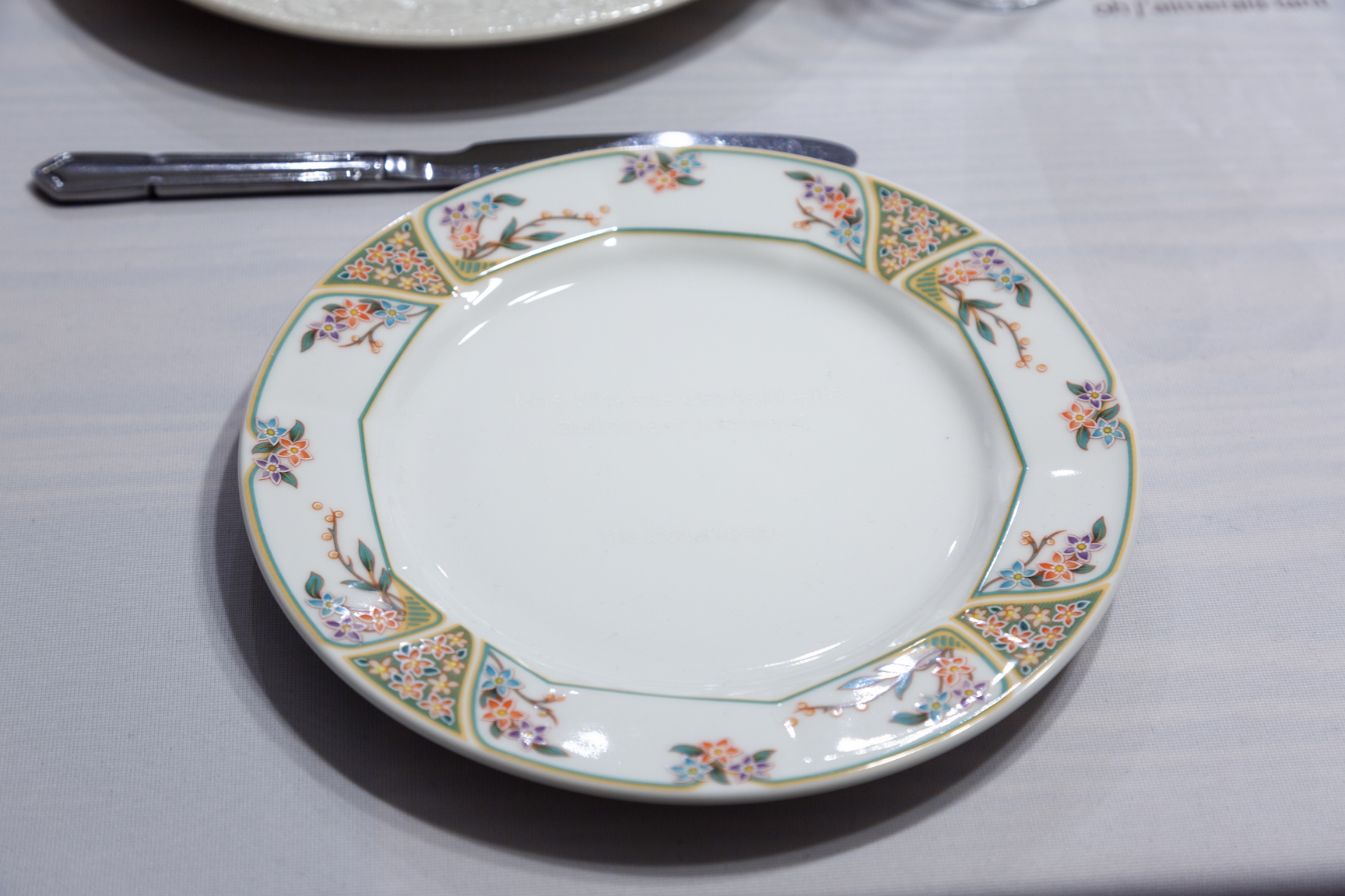 Table de salle à manger, asiettes et verres gravés de textes au laser, impressions de textes sur nappe en tissu
